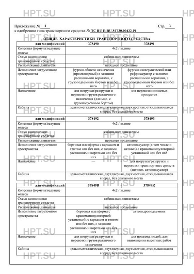 | Оборудование ТС | устройство вызова экстренных оперативных служб с функцией автоматического срабатывания при опрокидывании; электронная система контроля устойчивости; тахограф; кондиционер; специальный предупреждающий огонь автожелтого цвета (для модификаций 37849R, 378493) по заказу: предпусковой подогреватель двигателя; обтекатель |