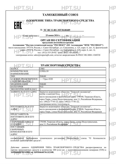 Заявитель Закрытое акционерное общество "Тверской экскаватор", ОГРН 1116952057914, место нахождения и фактический адрес: 170100, Тверская область, город Тверь, улица Индустриальная, дом 11, Российская Федерация, тел.: (4822) 77-81-22, факс: (4822) 77-81-22, электронная почта: tvex@umg.ru