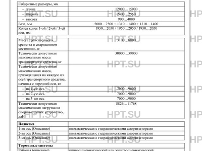 | Стояночный тормоз | привод от пружинных энергоаккумуляторов к тормозным механизмам всех осей или привод от пружинных энергоаккумуляторов к тормозным механизмам второй и третьей осей |