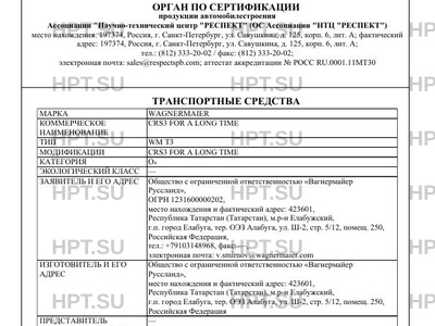 | Заявитель | Общество с ограниченной ответственностью "Вагнермайер Руссланд", ОГРН 1231600000202, место нахождения и фактический адрес: 423601, Республика Татарстан (Татарстан), м.р-н Елабужский, г.п. город Елабуга, тер. ОЭЗ Алабуга, ул. Ш-2, стр. 5/12, помещ. 250, Российская Федерация, тел.: +79103148968, факс: -, электронная почта: v.smirnov@wagnermaier.com |