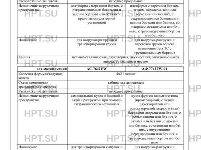 Оборудование ТС кондиционер (хладагент R-134a); устройство вызова экстренных оперативных служб; тент, каркас тента, ворота (для АБ-7342FW); внутреннее освещение кузова, ступенька и поручень, фиксирующие элементы для удержания груза, оборудования, инструмента (для АФ- 7742FW-01, АФ-7742FW-02); холодильная (хладагент R134A) и/или отопительная установка (для АФ-7742FW-02); передние и задние аутригеры (для АБ-7142FW); тент, упор (для АС-7642FW) по заказу: спойлер на крыше кабины, дополнительные фонари заднего хода