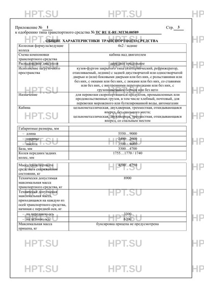 | Оборудование ТС | устройство вызова экстренных оперативных служб; кондиционер (хладагент R-134a); устройство ограничения максимальной скорости; дневные ходовые огни; внутреннее освещение кузова; ступенька и поручень; фиксирующие элементы для удержания груза, оборудования, инструмента; холодильная (хладагент R134A) и/или отопительная установка по заказу: спойлер на крыше кабины; дополнительные фонари заднего хода; инструментальный ящик |