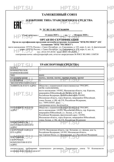 Полное ОТТС ТС RU E-RU.МТ30.00599