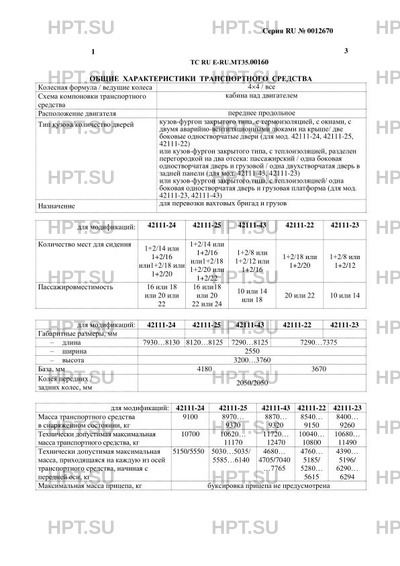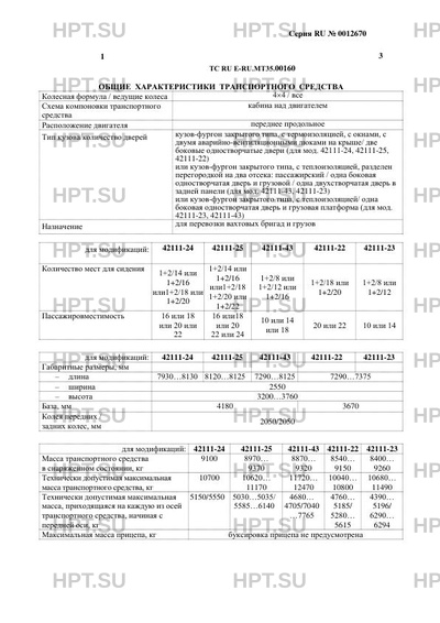 | Оборудование ТС | устройство ограничения максимальной скорости (функцию устройства ограничения максимальной скорости выполняет электронный блок управления двигателем), дневные ходовые огни (для модификаций, соответствующих требованиям Правил ЕЭК ООН № 48-04), радиооборудование (переговорное устройство), устройство вызова экстренных оперативных служб с функцией автоматического срабатывания при опрокидывании по заказу – радиоприемник), антенна, коробка отбора мощности, лебедка, кондиционер (хладагент R134а) |