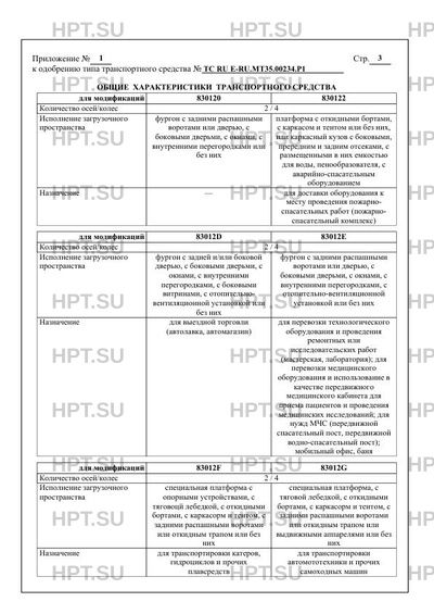 | Оборудование ТС | торговое оборудование; проблесковый маячок автожелтого цвета для мод. 83012K по заказу: кондиционер, генератор, холодильное, технологическое и другое специальное оборудование (по назначению и тех.заданию заказчика), опорное колесо. |