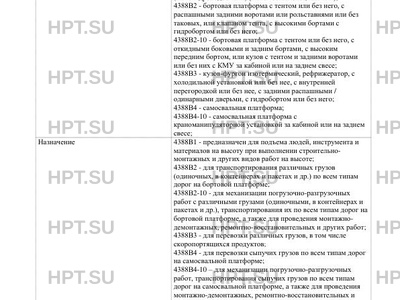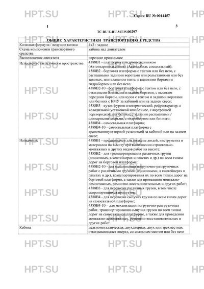 | Оборудование ТС | устройство ограничения максимальной скорости (функцию устройства ограничения максимальной скорости выполняет электронный блок управления двигателем), дневные ходовые огни (для модификаций, соответствующих требованиям Правил ООН № 48-04), устройство вызова экстренных оперативных служб с функцией автоматического срабатывания при опрокидывании. по заказу: предпусковой подогреватель двигателя, кондиционер, дневные ходовые огни (для базовых модификаций, соответствующих требованиям Правил ООН № 48-03), передние противотуманные фары (кроме модификаций, соответствующих требованиям Правил ООН № 48-04), в части модификаций гидроборт, холодильное оборудование, КМУ. |