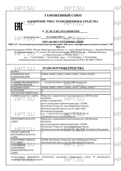 | Номер документа | ТС RU Е-RU.МТ35.00308.Р2И1 |