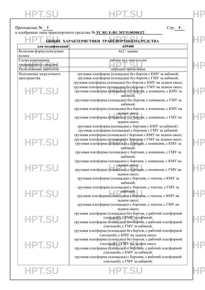 Оборудование ТС устройство ограничения максимальной скорости (функцию устройства ограничения максимальной скорости выполняет электронный блок управления двигателем); устройство вызова экстренных оперативных служб с функцией автоматического срабатывания при опрокидывании, электронная система контроля устойчивости; специальный предупреждающий огонь автожелтого цвета (для мод. 659416, 659417); гидроманипуляторная установка (ГМУ) (для мод. 659400 и 659416); краноманипуляторная установка (КМУ) (для мод. 659400 и 659416); коробка отбора мощности (для мод. с гидроподъемным оборудованием) по заказу: предпусковой подогреватель двигателя; кондиционер (хладагент R134a); передние противотуманные фары (для базовых модификаций, имеющих официальное утверждение на основании Правил ООН № 48-05); спутниковое навигационное оборудование; тахограф; фонари освещения рабочей зоны; противооткатные упоры; радиостанции; гидравлическое оборудование; антенны; рундуки; стеллажи; багажники; аутригеры; лебедка; коробка отбора мощности (кроме мод. с гидроподъемным оборудованием); система быстрой замены кузовов "BDF" (для мод. 659415); люльки (рабочие платформы) для подъема людей и груза; обтекатели крыши кабины
