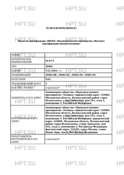 ТС RU E-RU.МТ35.00335.Р1