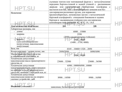 | Тип ТС | В случае превышения параметров, указанных в Приложении № 5 к техническому регламенту Таможенного союза "О безопасности колесных транспортных средств", и при эксплуатации с раздвинутыми стойками необходимо оформление специального разрешения для передвижения транспортного средства на территории стран Евразийского экономического союза. |