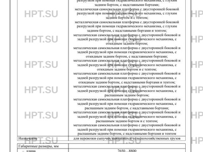 Исполнение загрузочного пространства металлическая самосвальная платформа с двусторонней боковой разгрузкой при помощи гидравлического механизма, с глухим задним бортом; металлическая самосвальная платформа с двусторонней боковой разгрузкой при помощи гидравлического механизма, с глухим задним бортом, с надставными бортами; металлическая самосвальная платформа с двусторонней боковой разгрузкой при помощи гидравлического механизма, с глухим задним бортом и с тентом; металлическая самосвальная платформа с двусторонней боковой разгрузкой при помощи гидравлического механизма, с глухим задним бортом, с надставными бортами и тентом; металлическая самосвальная платформа с двусторонней боковой и задней разгрузкой при помощи гидравлического механизма, с откидным задним бортом; металлическая самосвальная платформа с двусторонней боковой и задней разгрузкой при помощи гидравлического механизма, с откидным задним бортом, с надставными бортами; металлическая самосвальная платформа с двусторонней боковой и задней разгрузкой при помощи гидравлического механизма, с откидным задним бортом и с тентом; металлическая самосвальная платформа с двусторонней боковой и задней разгрузкой при помощи гидравлического механизма, с откидным задним бортом, с надставными бортами и тентом; металлическая самосвальная платформа с двусторонней боковой и задней разгрузкой при помощи гидравлического механизма, с распашным задним бортом; металлическая самосвальная платформа с двусторонней боковой и задней разгрузкой при помощи гидравлического механизма, с распашным задним бортом, с надставными бортами; металлическая самосвальная платформа с двусторонней боковой и задней разгрузкой при помощи гидравлического механизма, с распашным задним бортом и с тентом; металлическая самосвальная платформа с двусторонней боковой и задней разгрузкой при помощи гидравлического механизма, с распашным задним бортом, с надставными бортами и тентом