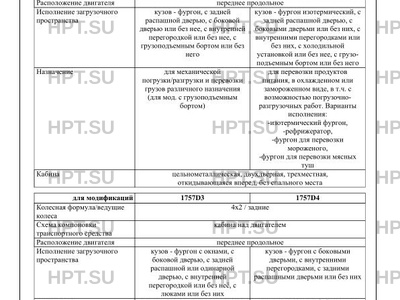 | Назначение | для механической погрузки/разгрузки и перевозки грузов различного назначения (для мод. с грузоподъемным бортом) для перевозки продуктов питания, в охлажденном или замороженном виде, в т.ч. с возможностью погрузочноразгрузочных работ. Варианты исполнения: -изотермический фургон, -рефрижератор, -фургон для перевозки мороженого, -фургон для перевозки мясных туш для перевозки технологического оборудования мастерской/лаборатории для перевозки хлебобулочных изделий для выездной торговли ("Автолавка") для механической погрузки/разгрузки и перевозки грузов раз-личного назначения, в т.ч. сыпучих (для мод. с грузоподъемным бортом и/или краноманипуляторной установкой) для временного проживания во время стоянки ("Автодом") для механической погрузки/разгрузки и эвакуации автотранспортных средств ("Автоэвакуатор") для перевозки технологического для перевозки специального оборудования передвижной авторемонтной мастерской ("ПАРМ"), в т.ч. с возможностью погрузочно-разгрузочных работ или без нее оборудования МВД или аварийно -спасательного оборудования МЧС для перевозки медицинского оборудования ("Передвижной медицинский комплекс") для перевозки специального оборудования ("Учебно - тренировочный передвижной комплекс для пожарных и спасателей") для сбора, перевозки и разгрузки твердых бытовых отходов ("Мусоровоз") |