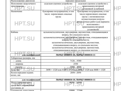 | Назначение | буксировка полуприцепов, в том числе перевозящих опасные грузы буксировка полуприцепов, в том числе перевозящих опасные грузы с возможностью осуществления погрузоразгрузочных работ (для варианта исполнения с краноманипуляторной установкой) |