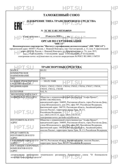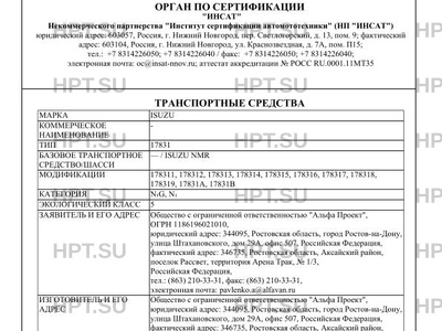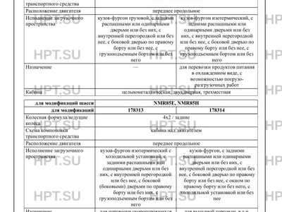 | Тип ТС | Транспортные средства изготавливаются на базе шасси модификаций: NMR85Е, NMR85Н… |