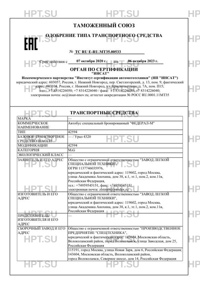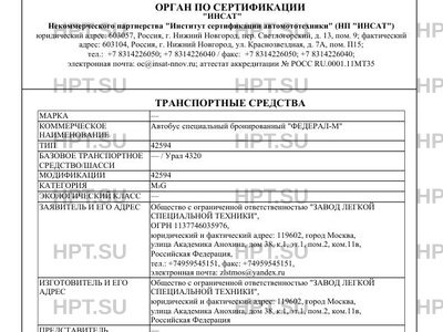| Коммерческое наименование | Автобус специальный бронированный "ФЕДЕРАЛ-М" |