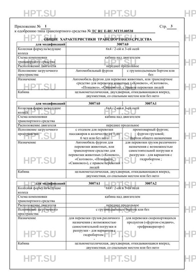 | Оборудование ТС | устройство вызова экстренных оперативных служб , специальный предупреждающий огонь автожелтого цвета (для мод. 3007A5 в исполнении «Дорожный мастер», 3007AС) по заказу: кондиционер, аудиосистема, электрические стеклоподъемники, GPS оборудование, тахограф, обтекатель крыши, боковые двери в фургоне, спальник, высокие борта, топливный бак повышенного объема, дополнительный топливный бак, коробка отбора мощности, предпусковой нагреватель; стеллажи, шкафы, рундуки, сиденья, ремни безопасности, столы, гидравлическое оборудование, технологическое оборудование, грузоподъемные борта, холодильная установка, каркасы тентов различной формы с распашными задними воротами или рольставнями или клапан тента; оборудование для автономного энергосбережения, багажник на крыше, лестница на крышу, лабораторное оборудование, аварийноспасательное оборудование и инструмент, средства связи и освещения, средства индивидуальной защиты и оказания первой помощи; инструмент, лебедка, траверса, колесные захваты, оборудование для временного проживания, оборудование для перевозки животных, грузоподъемный борт, краноманипуляторная установка, проблесковый маячок автожелтого цвета, стекла в фургоне |