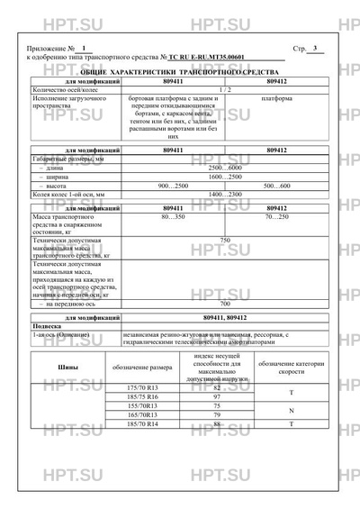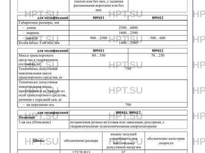 | Тип ТС | Тип - 80941; Модификации - 809411, 809412. |