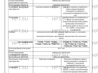 | Назначение | для буксировки полуприцепов, а также для выполнения погрузочно-разгрузочных работ, проведение монтажных и ремонтных работ на высоте (для ТС с КМУ с подъемной платформой) предназначены для перевозки грузов, а также для выполнения погрузочно-разгрузочных работ, проведение монтажных и ремонтных работ на высоте (для ТС с КМУ с подъемной платформой) для перевозки различных грузов, приборов и оборудования к месту выполнения комплекса сварочных, ремонтных или профилактических работ в коммунальном хозяйстве, теплосетях, на трубопроводах, для ремонта и обслуживания станков-качалок, промыслового оборудования, элементов фонтанной арматуры, замены смазки в редукторах; для доставки дежурной бригады (до 6 человек) к месту выполнения работ; для выполнения комплекса исследовательских и профилактических работ в медицине для перевозки различных грузов, приборов и оборудования к месту выполнения комплекса сварочных, ремонтных или профилактических работ в коммунальном хозяйстве, теплосетях, на трубопроводах, для ремонта и обслуживания станков-качалок, промыслового оборудования, элементов фонтанной арматуры, замены смазки в редукторах; для доставки дежурной бригады (до 6 человек) к месту выполнения работ для перевозки различных грузов, приборов и оборудования к месту выполнения комплекса сварочных, ремонтных или м хозяйстве, теплосетях, на трубопроводах, для ремонта и обслуживания станков-качалок, промыслового оборудования, элемен но-разгрузочных работ, проведение монтажных и ремонтных работ на высоте (для ТС с КМУ с подъемной платформой) профилактических работ в коммунальном хозяйстве, теплосетях, на трубопроводах, для ремонта и обслуживания станков-качалок, промыслового оборудования, элементов фонтанной арматуры, замены смазки в редукторах; для доставки дежурной бригады (до 6 человек) к месту выполнения работ, выполнения погрузочно-разгрузочных работ, проведение монтажных и ремонтных работ на высоте (для ТС с КМУ с подъемной платформой) предназначены для подъема людей, инструмента и материалов на высоту при выполнении строительно-монтажных и других видов работ на высоте для перевозки пищевых продуктов в замороженном и охлажденном виде |