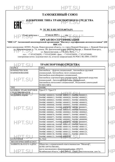 ТС RU E-RU.МТ35.00734.Р1