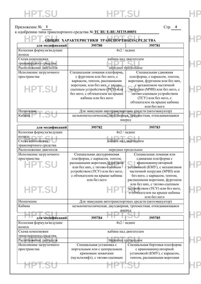 | Оборудование ТС | Электронная система контроля устойчивости, устройство вызова экстренных оперативных служб, специальный предупреждающий огонь автожелтого цвета (для автоэвакуаторов) По заказу: подушка безопасности, для водителя; ремень безопасности с преднатяжителем, для водителя; подушка безопасности, для бокового пассажира; ремень безопасности с преднатяжителем, для бокового пассажира; кондиционер; электростеклоподъемники; наружные зеркала заднего вида с обогревом; наружные зеркала заднего вида с электроприводом; наружные зеркала заднего вида с обогревом и электроприводом; центральный замок; иммобилайзер; заднее стекло в кабине; внутреннее зеркало заднего вида; предпусковой подогреватель-отопитель; дополнительный отопитель; тахограф; устройство ограничения максимальной скорости (функцию устройства ограничения максимальной скорости выполняет блок управления двигателем); телематическое устройство; спутниковое навигационное оборудование, технологическое оборудование мастерской, обтекатель крыши кабины, грузоподъемные борта, холодильное оборудование, краноманипуляторные установки, каркас тента, специальный предупреждающий огонь желтого цвета (кроме автоэвакуаторов), тент, тягово-сцепные устройства, сдвижная крыша, сдвижная штора, распашные двери, лебедка, траверса, колесные захваты, грейферы, гидравлическое оборудование, захваты, инструментальный ящик; механизм частичной погрузки (МЧП) (для мод. 395781, 395783, 395785, 395786, 395787, 39578Е) |