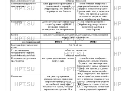 Назначение для погрузки/разгрузки (для мод. с гидробортом) и перевозки продуктов питания в охлажденном или замороженном виде для погрузки/разгрузки и перевозки грузов различного назначения (для мод. с гидробортом) для транспортирования, кратковременного хранения и заправки нефтепродуктами автомобилей, различных механизмов и машин, емкостей (транспортные средства FL в соответствии с пунктом 9.1.1.2 Европейского соглашения о международной дорожной перевозке опасных грузов (ДОПОГ)) для погрузки/разгрузки (или без нее) и перевозки опасных грузов класса 1 (транспортные средства EX/II в соответствии с пунктом 9.1.1.2 Европейского соглашения о международной дорожной перевозке опасных грузов (ДОПОГ)) для перевозки сыпучих/навальных грузов (самосвал) для эвакуации транспортных средств (автоэвакуатор) для поднятия инструмента, оборудования, людей и проведения ремонтных работ на высоте (автогидроподьемник, АГП) для погрузки/разгрузки и перевозки грузов различного назначения для погрузки/разгрузки и эвакуации транспортных средств (автоэвакуатор с КМУ) для погрузки и перевозки сыпучих/навальных грузов (самосвал с КМУ) для сбора, перевозки и разгрузки твердых бытовых отходов (мусоровоз) для погрузки/разгрузки и перевозки сменных кузовов (мультилифт) для перевозки пищевых или непищевых жидкостей для погрузки/разгрузки и перевозки сменных кузовов (мультилифт) для сбора, перевозки и разгрузки жидких бытовых отходов или фекальных жидкостей (вакуумная машина)