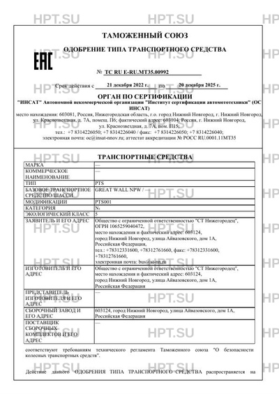 | Номер документа | ТС RU Е-RU.МТ35.00992 |