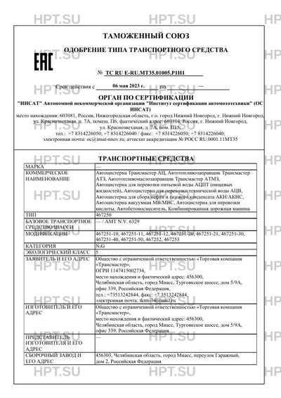 Полное ОТТС ТС RU E-RU.МТ35.01005.Р1И1