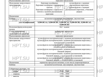 | Исполнение загрузочного пространства | бортовая платформа; бортовая платформа с каркасом и тентом; бортовая платформа с каркасом и тентом с задними распашными воротами кузов-фургон с задними распашными воротами; кузов-фургон с задними распашными воротами, с боковой дверью кузов-фургон изотермический с задними распашными воротами; кузов-фургон изотермический с задними распашными воротами, с холодильной установкой; кузов-фургон изотермический с задними распашными воротами, с отопительной установкой; кузов-фургон изотермический с задними распашными воротами, с боковой дверью; кузов-фургон изотермический с задними распашными воротами, с боковой дверью, с холодильной установкой; кузов-фургон изотермический с задними распашными воротами, с боковой дверью, с отопительной установкой |