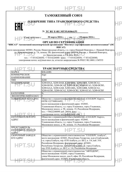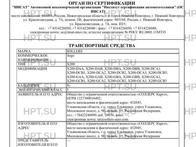 | Заявитель | Общество с ограниченной ответственностью «СОЛЛЕРС Карго», ОГРН 1227300016492, место нахождения и фактический адрес: 432045, Ульяновская область, г.о. город Ульяновск, город Ульяновск, Московское шоссе, д. 9Е, помещ. 15, Российская Федерация, тел.: +78422240090 доб. 26034, факс: -, электронная почта: tat@sollers-auto.com |