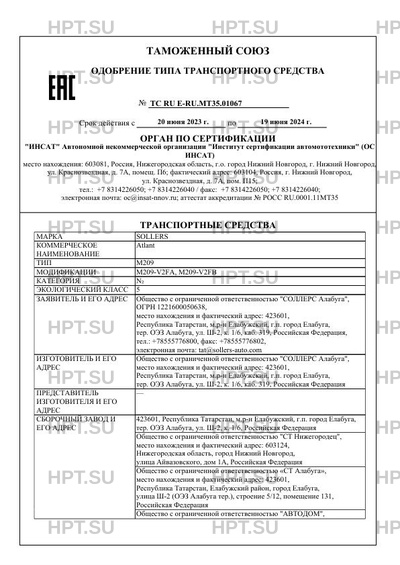 | Номер документа | ТС RU Е-RU.МТ35.01067 |