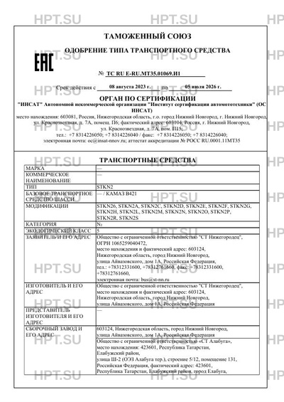 | Номер документа | ТС RU Е-RU.МТ35.01069.И1 |
