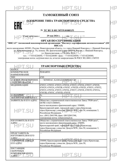 | Номер документа | ТС RU Е-RU.МТ35.01085.Р3 |