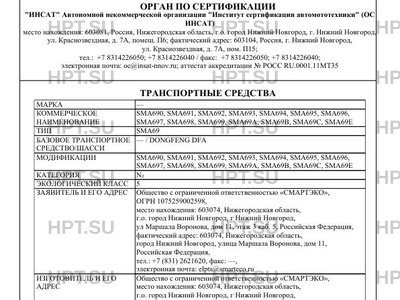 | Орган по сертификации | Орган по сертификации "ИНСАТ" Некоммерческого партнерства "Институт сертификации автомототехники" (НП "ИНСАТ") |