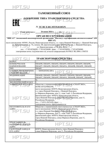 | Номер документа | ТС RU Е-RU.МТ35.01105.Р1 |