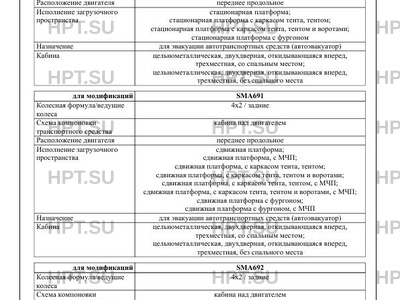 Оборудование ТС устройство вызова экстренных оперативных служб; электронная система контроля устойчивости (ESC); специальный предупреждающий огонь автожелтого цвета (для модификаций SMA690, SMA691, SMA692, SMA693, SMA699, SMA69C); коробка отбора мощности (для мод. с гидравлическим оборудованием) по заказу: обогрев зеркал; кондиционер кабины; аудиосистема; электростеклоподъемники; GPS оборудование; тахограф; передние противотуманные фары; заднее защитное устройство; сиденье водителя с пневматической подвеской; камера заднего вида; обтекатель на крышу кабины (для модификаций SMA694, SMA695, SMA696, SMA697, SMA698, SMA69A, SMA69B, SMA69E); предпусковой подогреватель двигателя; коробка отбора мощности; центральный замок; аппаратура спутниковой навигации; оборудование или подготовка для оборудования для контроля соблюдения водителем режимов движения, труда и отдыха устройство ограничения максимальной скорости; электроблокировка замков дверей; холодильная установка; гидроподъемное оборудование; гидроподъемный борт; обтекатель на фургон; каркас тента; тент; сдвижная крыша; сдвижная штора; ворота; лебедка; траверса; колесные захваты; грейферы; захваты; грузовая люлька; краноманипуляторная установка (КМУ); инструментальный ящик; механизм частичной погрузки (МЧП); автономный отопитель кабины; аппарели; карманы для хранения аппарелей; противоугонная система; система видеонаблюдения; автономный жидкостной подогреватель; отопитель; дополнительный подогреватель двигателя и кабины; бортовая информационномультимедийная система; система помощи при парковке; специальный предупреждающий огонь автожелтого цвета (кроме модификаций SMA690, SMA691, SMA692, SMA693, SMA699, SMA69C); технологическое оборудование мастерской; окна (для SMA69E)