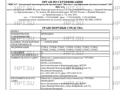 | Орган по сертификации | Орган по сертификации "ИНСАТ" Некоммерческого партнерства "Институт сертификации автомототехники" (НП "ИНСАТ") |