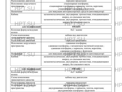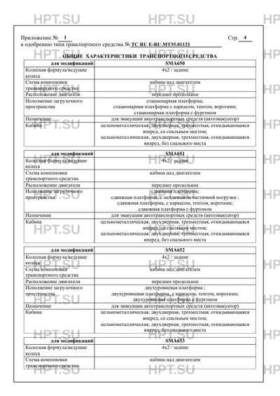 | Назначение | транспортных средств модификаций SMA657 в варианте исполнения «без гидроподъемного борта» - перевозка грузов различного назначения для эвакуации автотранспортных средств (автоэвакуатор) для погрузки/ разгрузки и перевозки сменных кузовов для погрузки/разгрузки и перевозки грузов различного назначения или для транспортировки транспортных средств путем частичной погрузки (для модификаций с механизмом частичной погрузки МЧП) для погрузки/ разгрузки и перевозки грузов различного назначения (для модификаций с гидроподъемным бортом) или для транспортировки транспортных средств путем частичной погрузки (для модификаций с механизмом частичной погрузки МЧП) для перевозки продуктов питания, в т.ч. скоропортящихся или для транспортировки транспортных средств путем частичной погрузки (для модификаций с механизмом частичной погрузки МЧП) для перевозки сыпучих/навальных грузов для подъема людей и оборудования на высоту (автогидроподъемник) для перевозки технологического оборудования передвижной мастерской (автомастерская) |