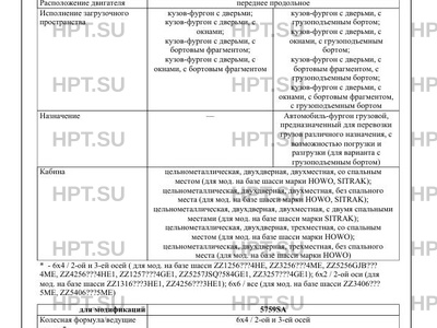 | Базовое ТС / Шасси | HOWO, SITRAK ZZHS (марка) Шасси (модификация) Категория HOWO ZZ1257???4GE1, ZZ5… |
