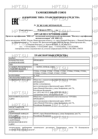 | Номер документа | ТС RU Е-RU.МТ35.01152.Р2 |