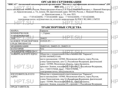 | Оборудование ТС | устройство вызова экстренных оперативных служб; сигнальная громкоговорящая установка (СГУ) и/или специальный предупреждающий огонь синего или сине-красного цвета (для автомобилей оперативных служб); цветографическая схема (для автомобилей оперативных служб) по ГОСТ Р 50574-2019; оборудование, предусмотренное п. 1.15 приложения 6 к ТР ТС 018/2011 (для автомобилей предназначенных для перевозки денежных средств и ценных грузов) по заказу: кондиционер (хладагент R134А); аудиосистема; антенна; круиз-контроль; передние противотуманные фары; люк в крыше; рейлинги на крыше; багажные дуги; вентиляционный люк; эвакуационный люк; аварийно-спасательное оборудование; генератор; стеллажи; встроенные шкафы; отсеки; мониторы; стойки для оборудования; система пожаротушения моторного отсека; бандаж на колесные диски; отключатель масс АКБ; переговорное устройство "водитель - улица"; задний ограничительный бамперподножка; камера заднего вида; инвертер; дополнительная АКБ; фаркоп; розетки; цветографическая схема по ГОСТ Р 52508-2005 (для транспортных средств для перевозки денежной выручки и ценных грузов); специальный предупреждающий огонь белолунного цвета; специальный предупреждающий огонь оранжевого цвета; проблесковый маячок синего цвета; иммобилайзер; датчик парковки; предпусковой подогреватель двигателя; система контроля давления воздуха в шинах; сигнальная громкоговорящая установка (СГУ); фара-искатель; навигационная система; камеры внешнего обзора; камеры внутреннего обзора; система видеорегистрации; вентиляция грузового отделения (вентилятор механический на крыше); дополнительный кондиционер для грузового отсека; автономный стояночный жидкостной или воздушный отопитель с программируемым таймером и ДУ; автономный стояночный жидкостной или воздушный отопитель с программируемым таймером; система фиксации груза-оборудования (крепежные шины, штанги-ограничители, ремни с механизмами затяжки, крепежные фалы); сетка для фиксации груза; выдвижная платформа; антенны наружные: радио, телевизионные, систем спутниковой навигации; отключатель массы основной АКБ; отключатель массы дополнительной АКБ; бойницы; дополнительные механические запоры дверей; холодильное оборудование; морозильное оборудование; дополнительная теплоизоляция грузового отсека; заземляющая цепь; багажник на крыше; холодильно-обогревательная установка (рефрижератор); система пожаротушения грузового отсека; лебедка; дополнительное освещение зоны погрузкиОдобрение типа транспортного средства № Стр. разгрузки; фары освещения рабочей зоны |