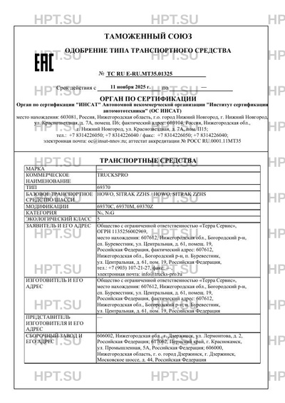 | Номер документа | ТС RU Е-RU.МТ35.01325 |