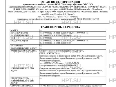 | Орган по сертификации | Орган по сертификации продукции автомобилестроения ООО "Центр сертификации" (ОС ЦС) |