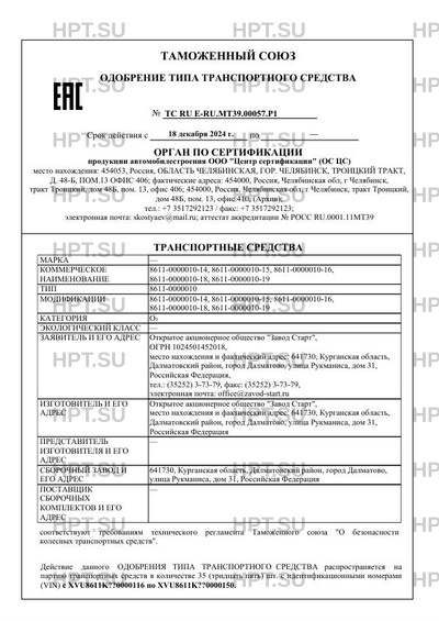 | Номер документа | ТС RU Е-RU.МТ39.00057.Р1 |