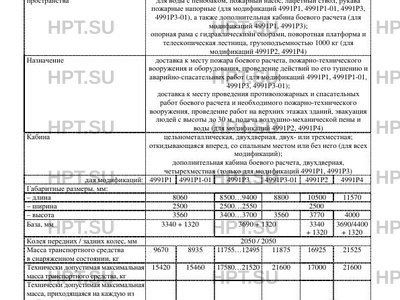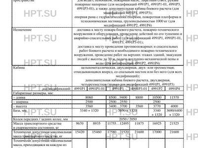 | Тип ТС | Данное «одобрение типа транспортного средства» является распространением «одобрения типа транспортного средства» № Е-RU.МР03.А.00334, выданного до вступления в силу технического регламента Таможенного союза «О безопасности колесных транспортных средств». Коммерческие наименования транспортных средств: - автоцистерна пожарная – для транспортных средств типа 4991Р в модификациях 4991Р1, 4991Р1-01, 4991Р3, 4991Р3-01; - автолестница пожарная – для транспортных средств типа 4991Р в модификациях 4991Р2, 4991Р4. Транспортные средства типа 4991Р в модификациях 4991Р1, 4991Р1-01, 4991Р2 изготавливаются на базе шасси: марка – КАМАЗ, тип – 5350, модификации – 5350-42. Транспортные средства типа 4991Р в модификациях 4991Р3, 4991Р3-01, 4991Р4 изготавливаются на базе шасси: марка – КАМАЗ, тип – 43118, модификации – 43118-42, 43118-46. |