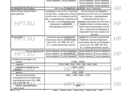 | Оборудование ТС | противооткатные упоры, увязочные устройства, подъемник запасного колеса, металлический, деревянный или фанерный настил, передний защитный борт, задний защитный борт, топливные баки, проблесковый маяк оранжевого цвета – для модификаций 94165-0000016, 94165-0000017, 94165-0000018, 94165-0000080, 94165-0000081, 94165-0000082, 94165-0000040, 94165-0000041, 94165-0000042, 94165-0000090, 94165-0000091, 94165-0000092, противооткатные упоры, механизм подъема трапа пружинный или гидравлический, автономная гидростанция, лебедка с гидравлическим или электрическим приводом, передний щит, отбойные брусья, передние упоры, дополнительные опорные устройства с механическим или гидравлическим приводом, увязочные устройства, подъемник запасного колеса, топливные баки, дополнительные борта на рабочей площадке, каркас тента и тент, металлический, деревянный или фанерный настил, проблесковый маяк оранжевого цвета – для модификаций 94165-0000010, 94165-0000011, 94165-0000012, 94165-0000013, 94165-0000014, 94165-0000015, 94165-0000020, 94165-0000083, 94165-0000084, 94165-0000085, 94165-0000043, 94165-0000044, 94165-0000045, 94165-0000093, 94165-0000094, 94165-0000095 |