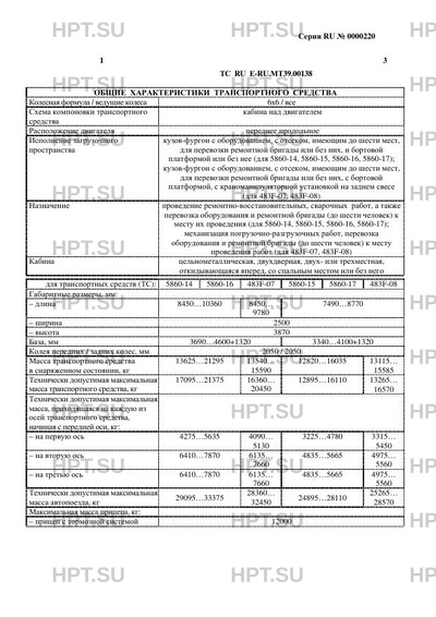| Тип ТС | Коммерческие наименования: Мастерская передвижная - для типов 5860-14, 5860-15;… |