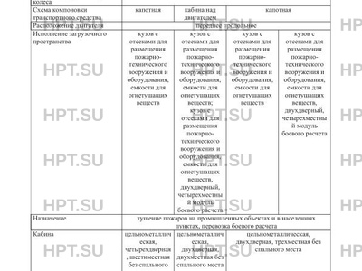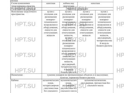 | Оборудование ТС | централизованная система регулирования давления воздуха в шинах, устройство ограничения максимальной скорости (функцию устройства ограничения максимальной скорости выполняет электронный блок управления двигателем), устройство вызова экстренных оперативных служб с автоматическим срабатыванием при опрокидывании, пожарно-техническое оборудование и отсеки для его размещения, сигнально-громкоговорящая установка, проблесковый(е) маяк(и) синего цвета, фары искатели по заказу: предпусковой подогреватель двигателя, лафетный ствол, |