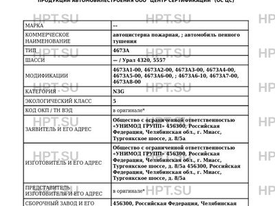 | Заявитель | Общество с ограниченной ответственностью «УНИМОД ГРУПП». 456300, Российская Федерация, Челябинская обл., г. Миасс, Тургоякское шоссе, д. 8/5а. ОГРН: 1037402328754. Тел. (3513) 28-99-01. Факс (3513) 28-99-01. Email mail@avtoural.ru. |