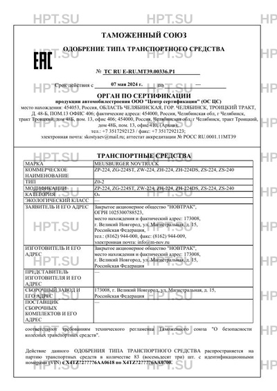 ТС RU E-RU.МТ39.00336.Р1