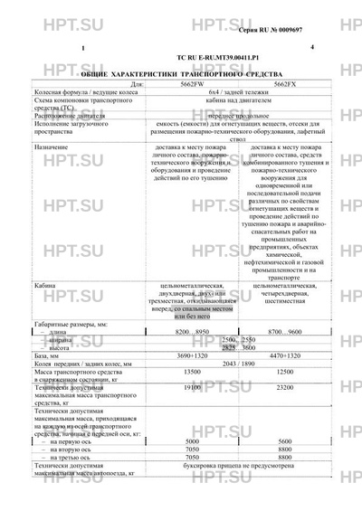 | Дополнительная информация | Транспортные средства 5662FW и 5662FX в модификации 0 изготавливаются на базе шасси: марка – КАМАЗ, тип – 65115, модификации – 65115-А5, 65115-50. Таблица обозначения коммерческого наименования, типа и модификации. Тип Моди-фикация Коммерческое наименование 5662FW 0 Автомобиль порошкового тушения пожарный АП 5000-40 (65115) 5662FX 0 Автомобиль комбинированного тушения пожарный АКТ 5,0/1000-40/20 (65115), Автомобиль комбинированного тушения пожарный АКТ 5,0/1000-40/40 (65115), Автомобиль комбинированного тушения пожарный АКТ 5,0/1000-60/20 (65115), Автомобиль комбинированного тушения пожарный АКТ 5,0/1000-60/40 (65115), Автомобиль комбинированного тушения пожарный АКТ 5,0/1000-70/20 (65115), Автомобиль комбинированного тушения пожарный АКТ 5,0/1000-70/40 (65115), Автомобиль комбинированного тушения пожарный АКТ 6,0/1000-40/20 (65115), Автомобиль комбинированного тушения пожарный АКТ 6,0/1000-40/40 (65115), Автомобиль комбинированного тушения пожарный АКТ 6,0/1000-60/20 (65115), Автомобиль комбинированного тушения пожарный АКТ 6,0/1000-60/40 (65115), Автомобиль комбинированного тушения пожарный АКТ 6,0/1000-70/20 (65115), Автомобиль комбинированного тушения пожарный АКТ 6,0/1000-70/40 (65115), Автомобиль комбинированного тушения пожарный АКТ 7,0/1000-40/20 (65115), Автомобиль комбинированного тушения пожарный АКТ 7,0/1000-40/40 (65115), Автомобиль комбинированного тушения пожарный АКТ 7,0/1000-60/20 (65115), Автомобиль комбинированного тушения пожарный АКТ 7,0/1000-60/40 (65115), Автомобиль комбинированного тушения пожарный АКТ 7,0/1000-70/20 (65115), Автомобиль комбинированного тушения пожарный АКТ 7,0/1000-70/40 (65115) В случае несоответствия параметров транспортных средств значениям, установленным в Приложении № 5 к техническому регламенту Таможенного союза «О безопасности колесных транспортных средств», для передвижения транспортных средств по территории государств-членов Таможенного союза необходимо оформление специального разрешения. |